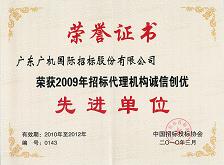 招投標(biāo)協(xié)會(huì)頒發(fā)"2009年度招標(biāo)代理機(jī)構(gòu)誠(chéng)信創(chuàng)優(yōu)先進(jìn)單位"