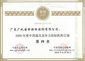 中國(guó)采購(gòu)與招標(biāo)網(wǎng)"2009年度中國(guó)最具競(jìng)爭(zhēng)力招標(biāo)機(jī)構(gòu)百?gòu)?qiáng)第四名"