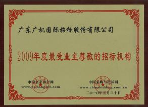 中國(guó)采購(gòu)與招標(biāo)網(wǎng)"2009年度最受業(yè)主尊敬的招標(biāo)機(jī)構(gòu)"