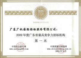 中國(guó)采購(gòu)與招標(biāo)網(wǎng)"2009年度廣東省最具競(jìng)爭(zhēng)力招標(biāo)機(jī)構(gòu)第一名"