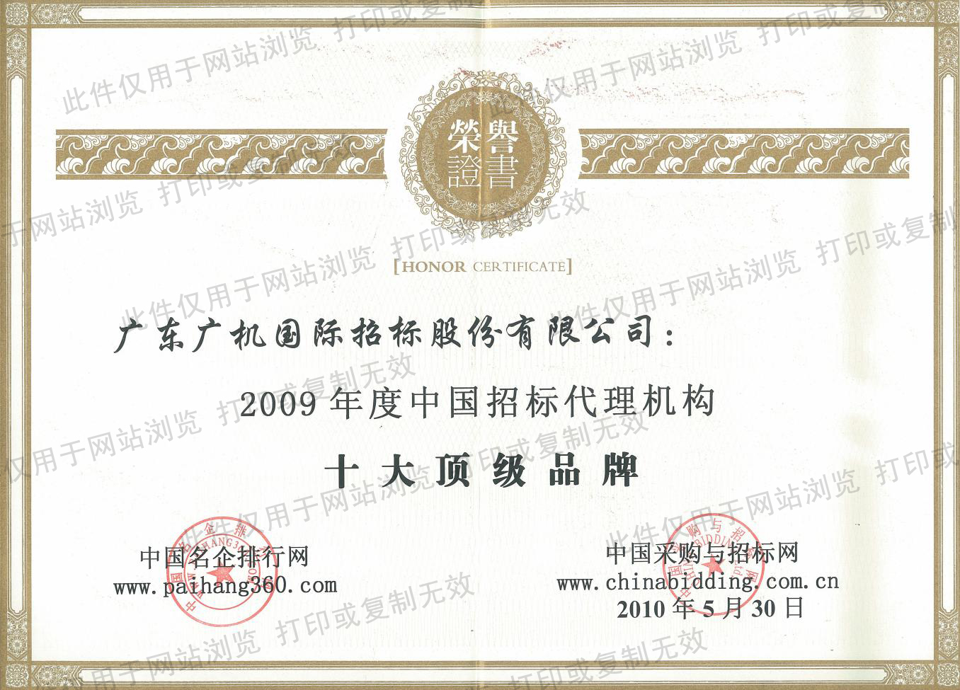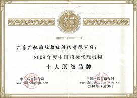 中國(guó)采購(gòu)與招標(biāo)網(wǎng)"2009年度中國(guó)招標(biāo)代理機(jī)構(gòu)十大頂級(jí)品牌"