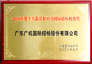 中國(guó)國(guó)際招標(biāo)網(wǎng)"2008年度十大最具影響力國(guó)際招標(biāo)機(jī)構(gòu)獎(jiǎng)"