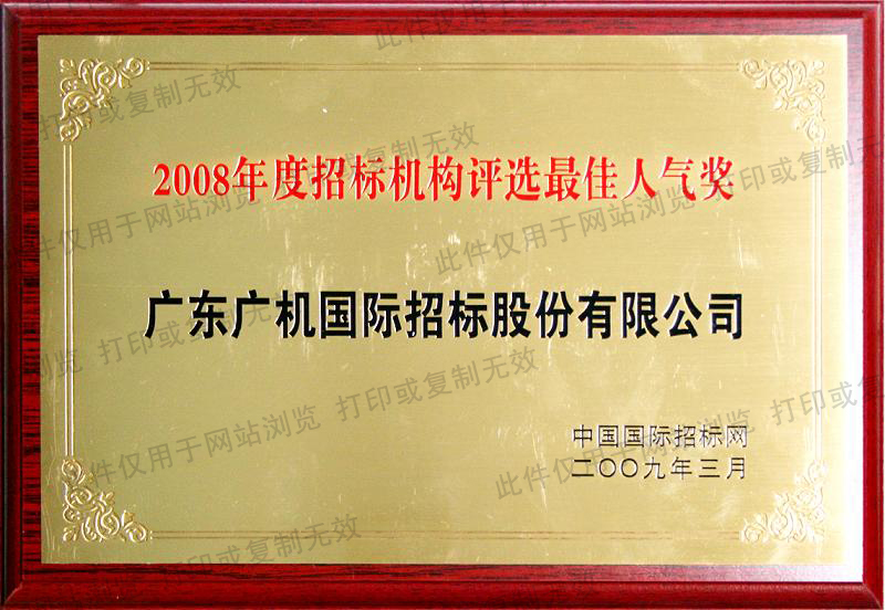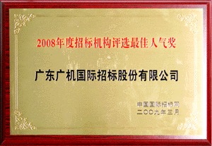 中國(guó)國(guó)際招標(biāo)網(wǎng)"2008年度最佳人氣獎(jiǎng)"