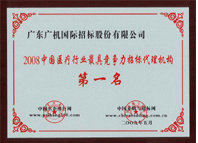 中國(guó)采購(gòu)與招標(biāo)網(wǎng)2008年度中國(guó)醫(yī)療行業(yè)最具競(jìng)爭(zhēng)力招標(biāo)代理機(jī)構(gòu)第一名