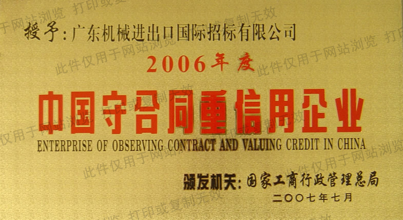 國(guó)家工商行政管理總局中國(guó)守合同重信用企業(yè)