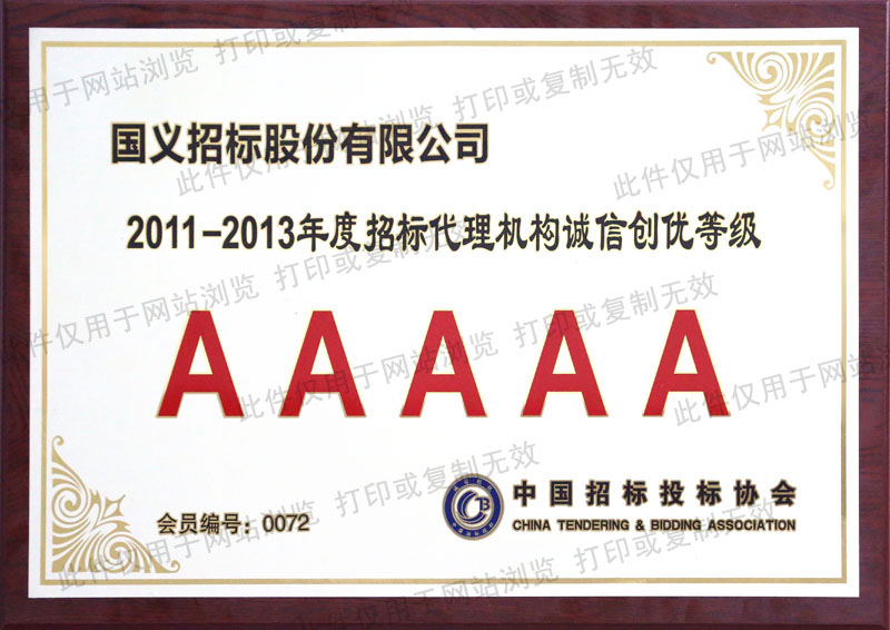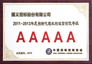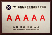 2011-2013年度招標(biāo)代理機(jī)構(gòu)誠(chéng)信創(chuàng)優(yōu)等級(jí)5A牌匾