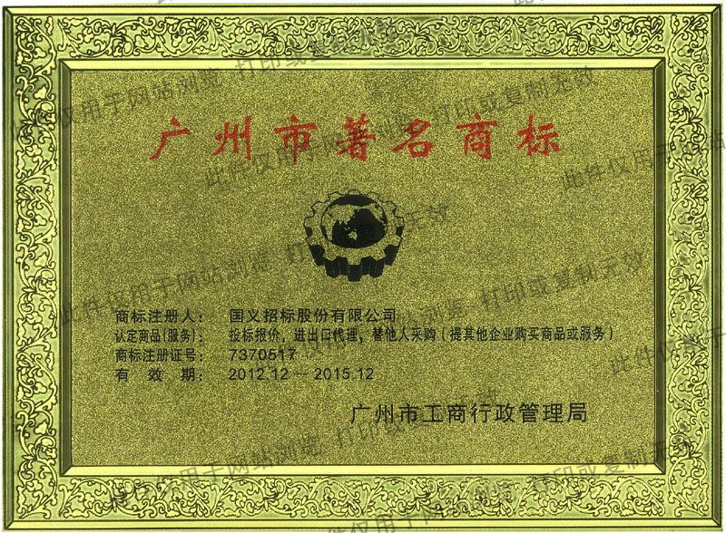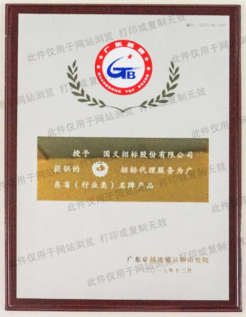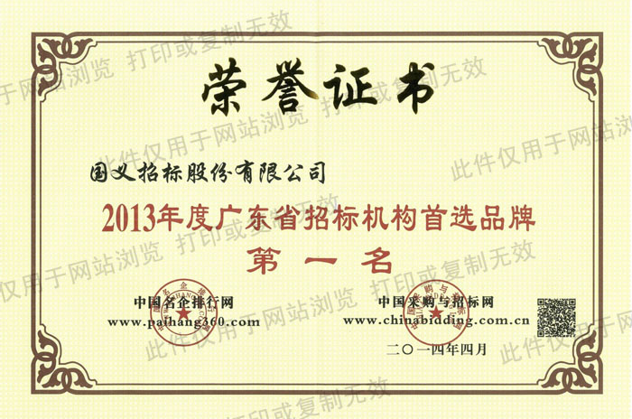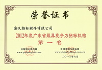 2013年度廣東省招標(biāo)機(jī)構(gòu)首先品牌第一名