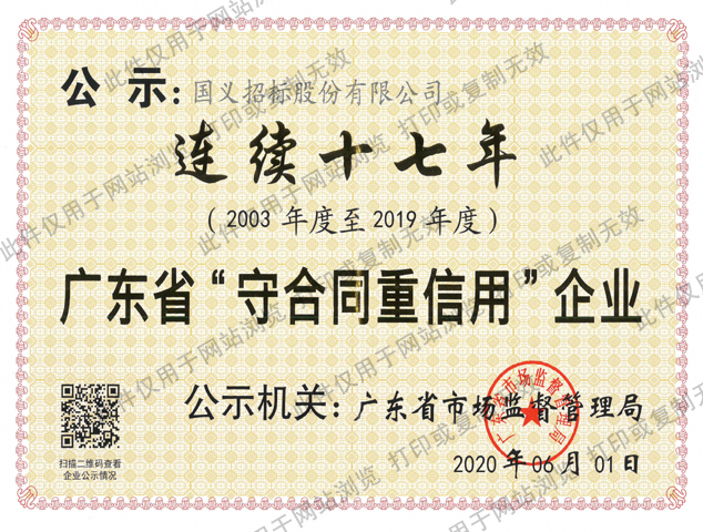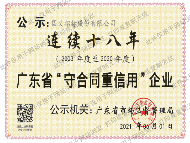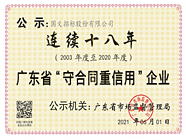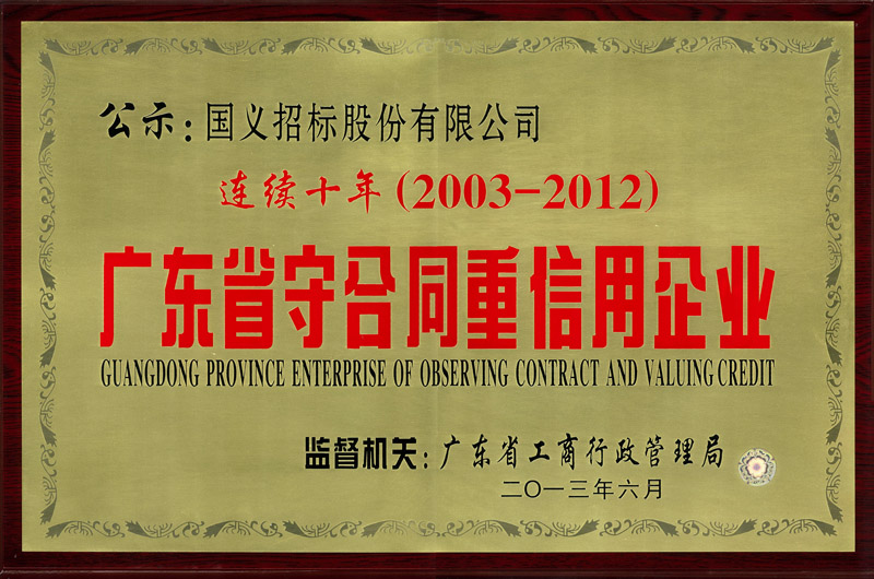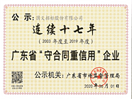 廣東省工商行政管理局守合同重信用企業(yè)(連續(xù)十年)