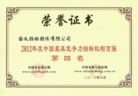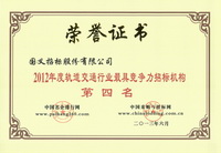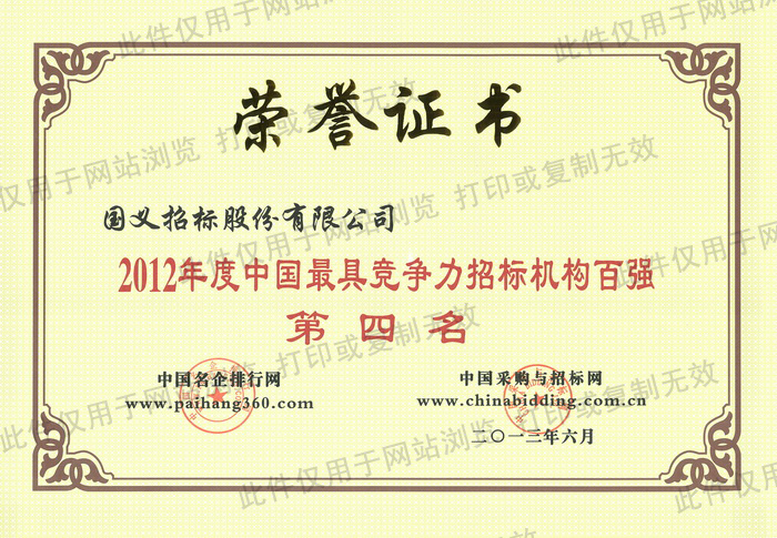 2012年度中國(guó)最具競(jìng)爭(zhēng)力招標(biāo)機(jī)構(gòu)百?gòu)?qiáng)第四名