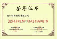2012年度全國(guó)電力行業(yè)最具競(jìng)爭(zhēng)力招標(biāo)機(jī)構(gòu)十強(qiáng)