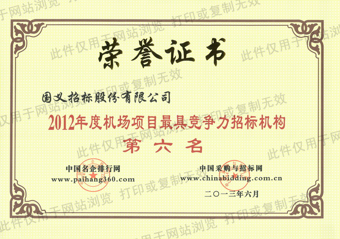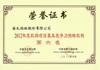 2012年度機(jī)場(chǎng)項(xiàng)目最具競(jìng)爭(zhēng)力招標(biāo)機(jī)構(gòu)第六名