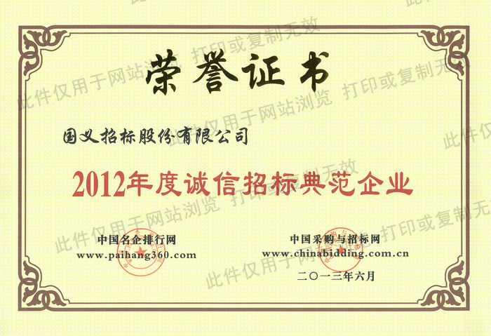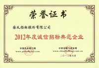 2012年度誠(chéng)信招標(biāo)典范企業(yè)