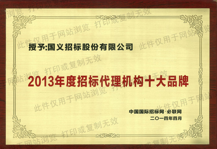 2013年度中國(guó)招標(biāo)機(jī)構(gòu)十大頂級(jí)品牌