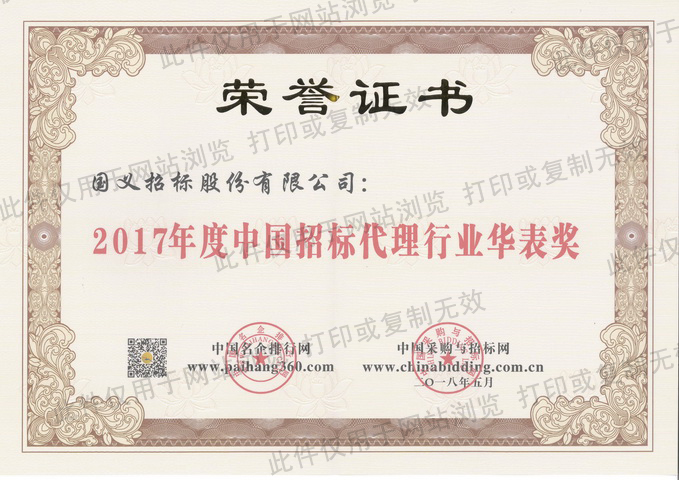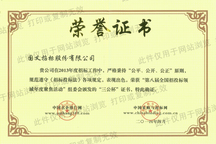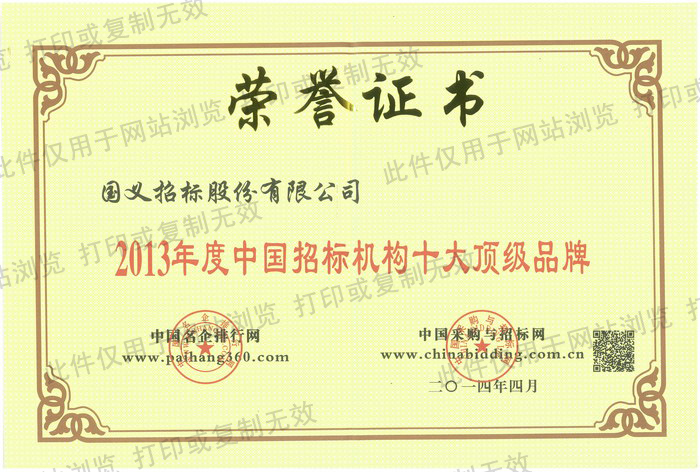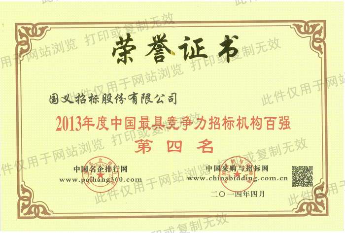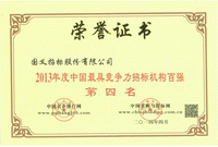 2013年度中國(guó)最具競(jìng)爭(zhēng)力招標(biāo)機(jī)構(gòu)百?gòu)?qiáng)第四名(5星)