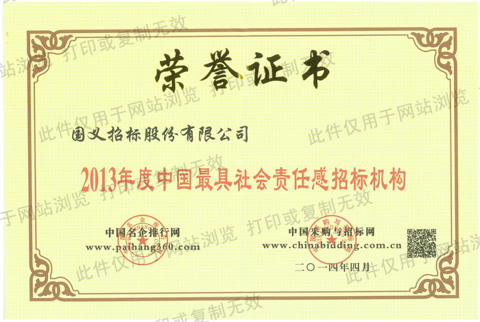 2013年度中國(guó)最具社會(huì)責(zé)任感招標(biāo)機(jī)構(gòu)