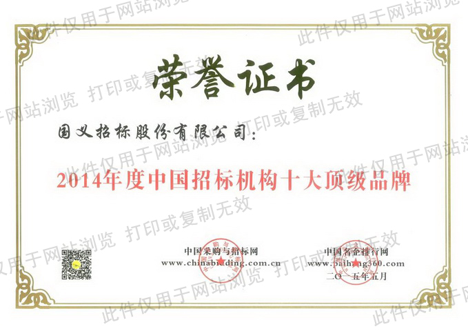 2014年度中國(guó)招標(biāo)機(jī)構(gòu)十大頂級(jí)品牌