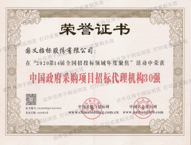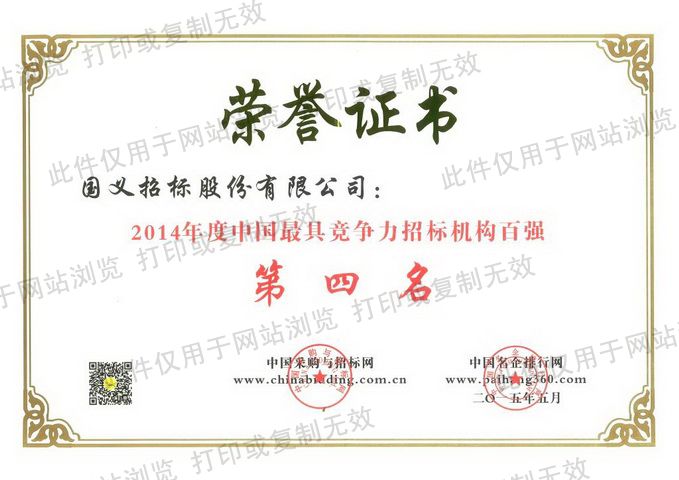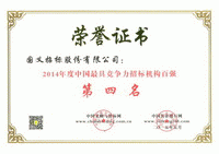 2014年度中國(guó)最具競(jìng)爭(zhēng)力招標(biāo)機(jī)構(gòu)百?gòu)?qiáng)第四名
