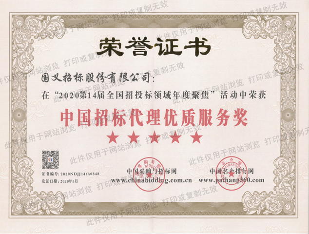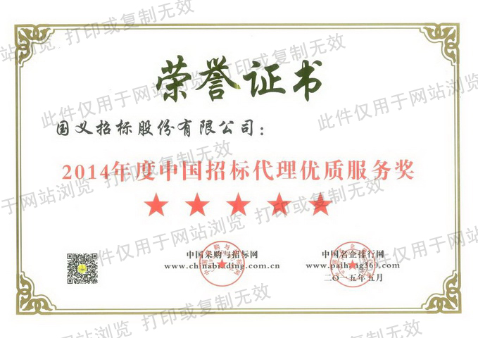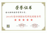 2014年度中國(guó)招標(biāo)代理優(yōu)質(zhì)服務(wù)獎(jiǎng)(5星)