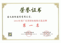 2014年度廣東省招標(biāo)機(jī)構(gòu)首選品牌第一名