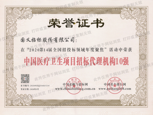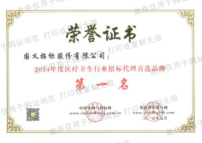 2014年度醫(yī)療衛(wèi)生行業(yè)招標(biāo)代理機(jī)構(gòu)首選品牌第一名