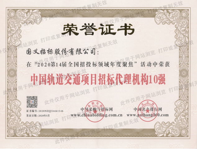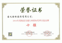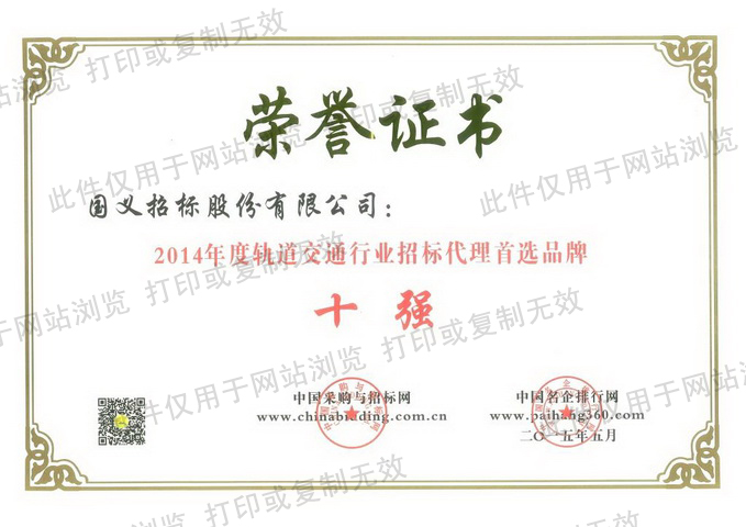 2014年度軌道交通行業(yè)招標(biāo)代理首選品牌十強(qiáng)