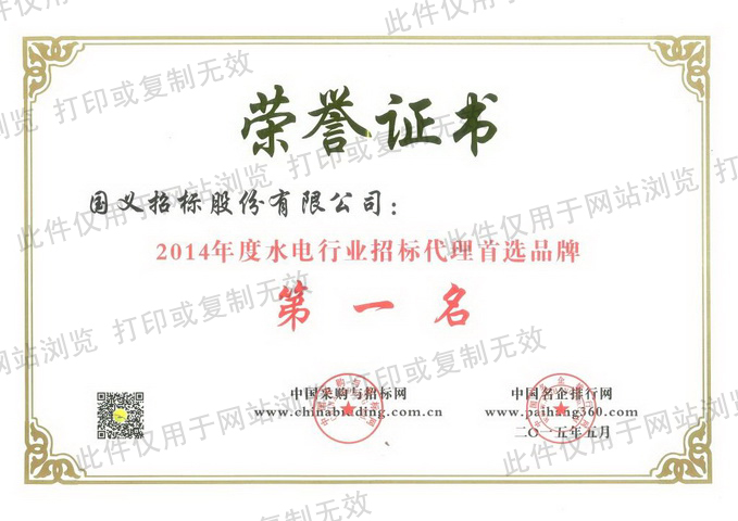2014年度水電行業(yè)招標(biāo)代理首選品牌