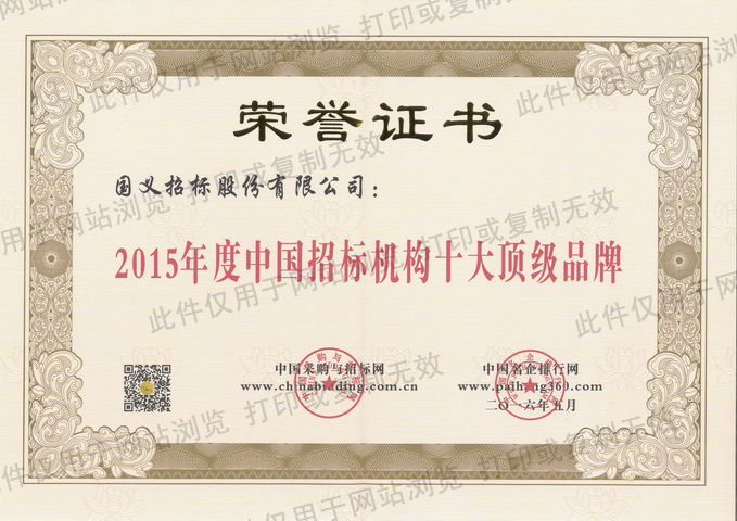 2015年度中國(guó)招標(biāo)機(jī)構(gòu)十大頂級(jí)品牌