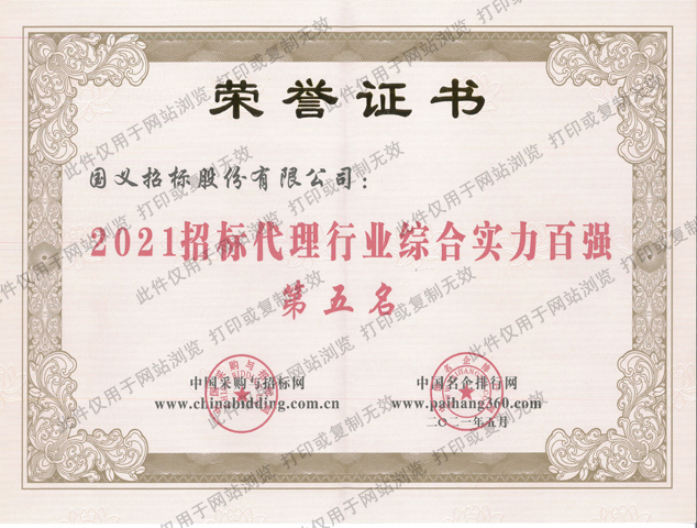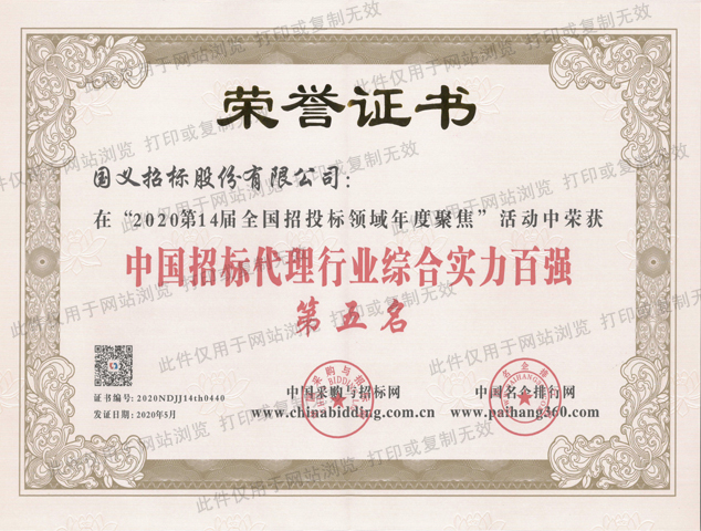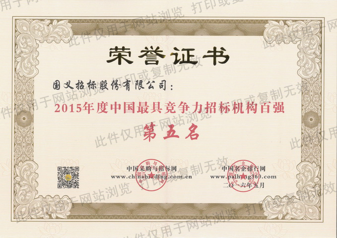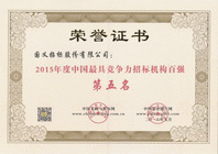 2015年度中國(guó)最具競(jìng)爭(zhēng)力招標(biāo)機(jī)構(gòu)百?gòu)?qiáng)第五名
