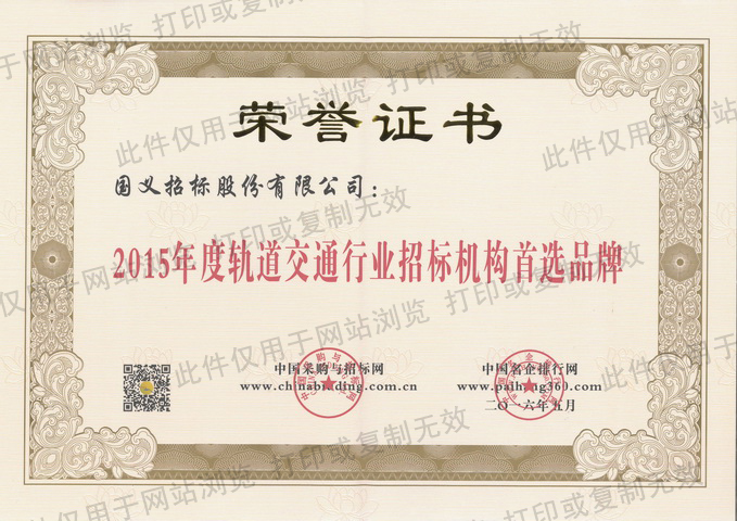 2015年度中國(guó)軌道交通行業(yè)招標(biāo)機(jī)構(gòu)首選品牌