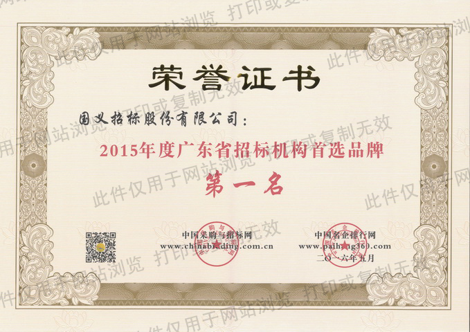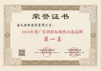 2015年度廣東省招標(biāo)機(jī)構(gòu)首選品牌第一名