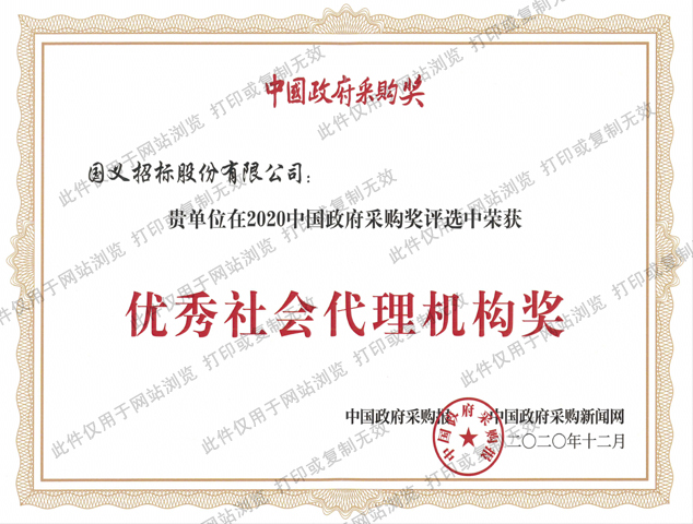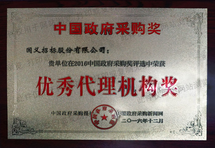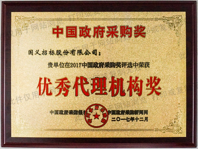 中國(guó)政府采購(gòu)獎(jiǎng)-優(yōu)秀代理機(jī)構(gòu)獎(jiǎng)