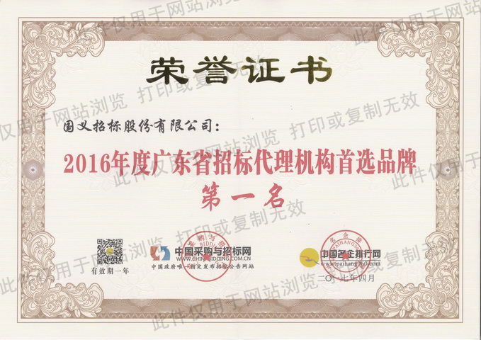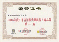 2016年度廣東省招標(biāo)代理機(jī)構(gòu)首選品牌第一名