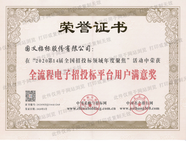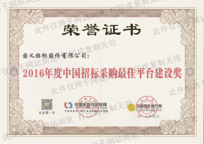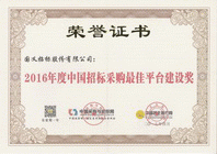 2016年度中國(guó)招標(biāo)采購(gòu)最佳平臺(tái)建設(shè)獎(jiǎng)