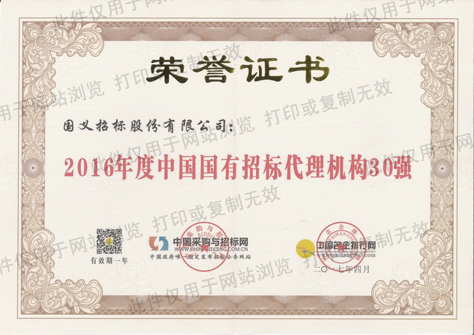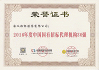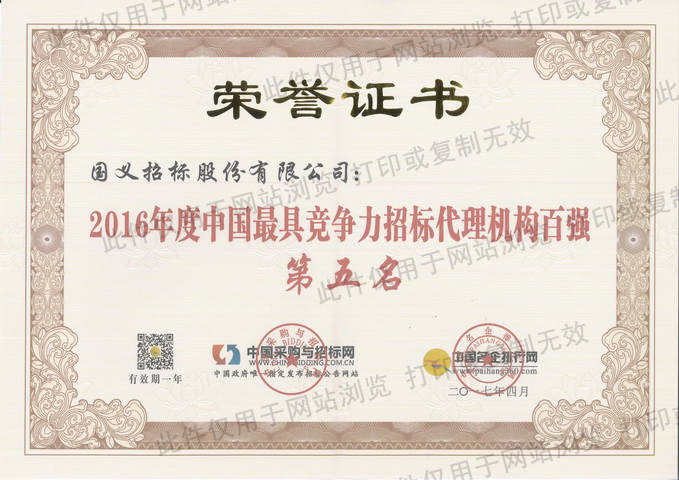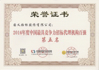 2016年中國(guó)最具競(jìng)爭(zhēng)力招標(biāo)代理機(jī)構(gòu)百?gòu)?qiáng)第五名