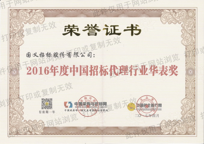 2016年中國(guó)招標(biāo)代理行業(yè)華表獎(jiǎng)