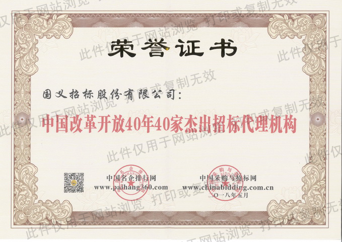 中國(guó)改革開放40年40家杰出招標(biāo)代理機(jī)構(gòu)