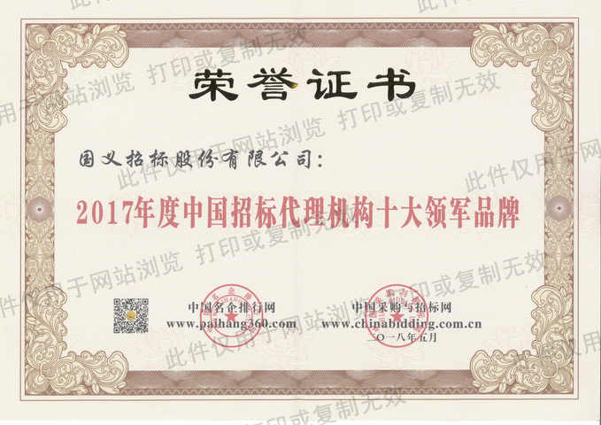 2017年度中國(guó)招標(biāo)代理機(jī)構(gòu)十大領(lǐng)軍品牌