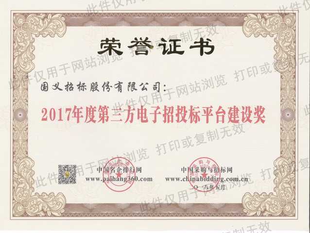 2017年度第三方電子招投標(biāo)平臺(tái)建設(shè)獎(jiǎng)