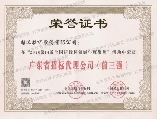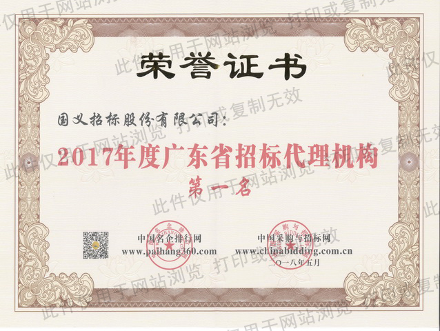 2017年度廣東省招標(biāo)代理機(jī)構(gòu)(第一名)