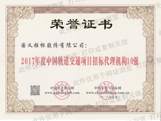 2017年度中國(guó)軌道交通項(xiàng)目招標(biāo)代理機(jī)構(gòu)10強(qiáng)