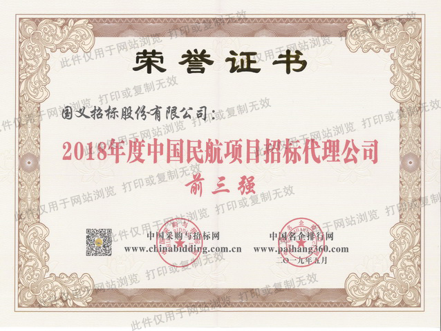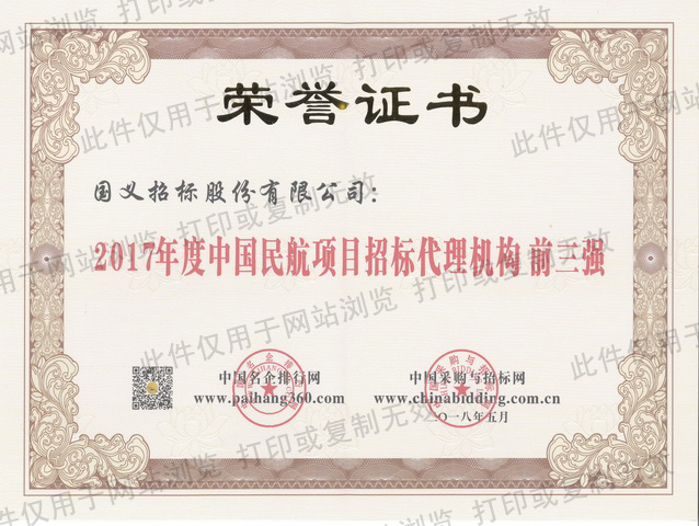 2017年度中國(guó)民航項(xiàng)目招標(biāo)代理機(jī)構(gòu)前三強(qiáng)