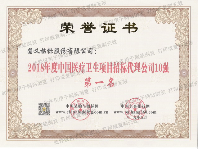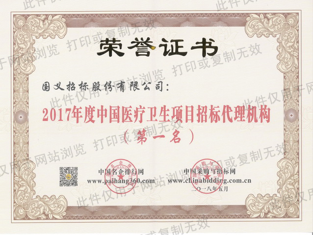 2017年度中國(guó)醫(yī)療衛(wèi)生項(xiàng)目招標(biāo)代理(第一名)