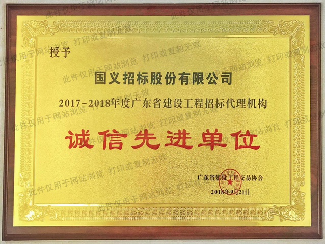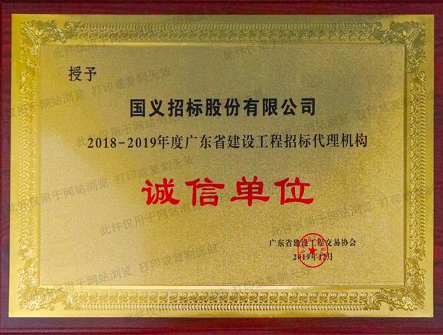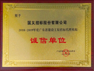 2018年度廣東省公共資源交易信用優(yōu)秀單位AAA級(jí)(類別:中介服務(wù)方)