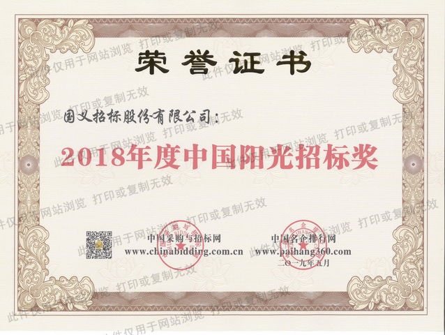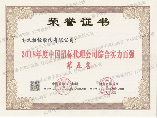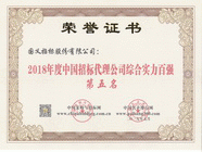 2018 年度中國(guó)招標(biāo)代理公司綜合實(shí)力百?gòu)?qiáng)(第五名)