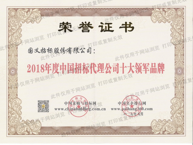 2018 年度中國(guó)招標(biāo)代理公司十大領(lǐng)軍品牌