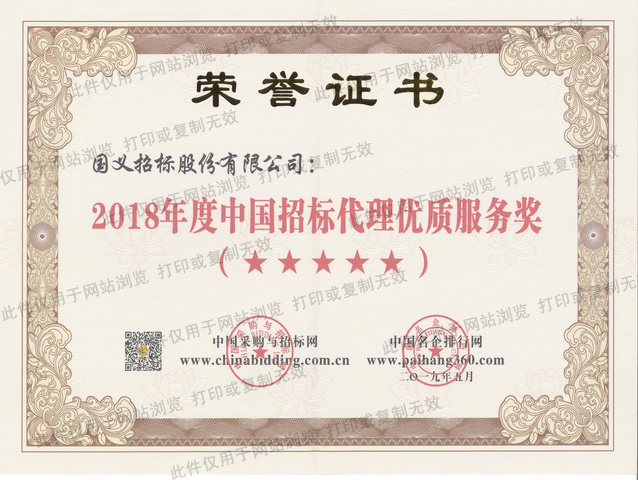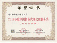 2018 年度中國(guó)招標(biāo)代理優(yōu)質(zhì)服務(wù)獎(jiǎng)(★★★★★)