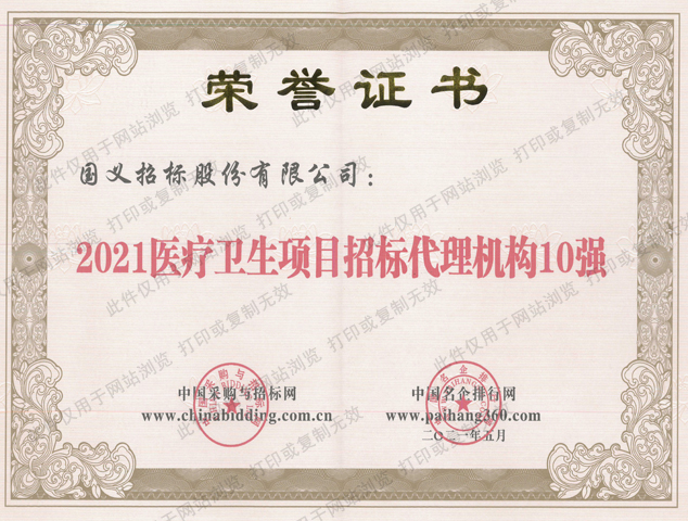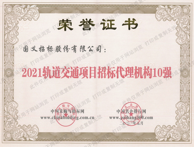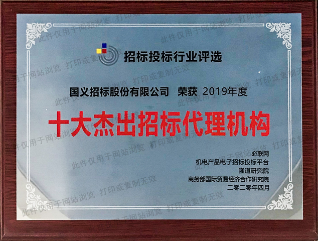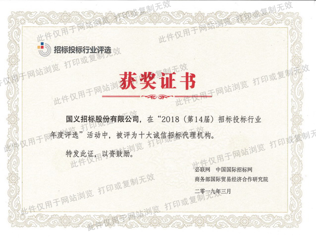 十大誠(chéng)信招標(biāo)代理機(jī)構(gòu)(證書)