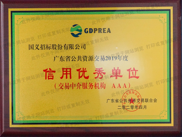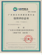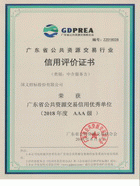 2018年度廣東省公共資源交易信用優(yōu)秀單位AAA級(jí)(類別:平臺(tái)服務(wù)方)